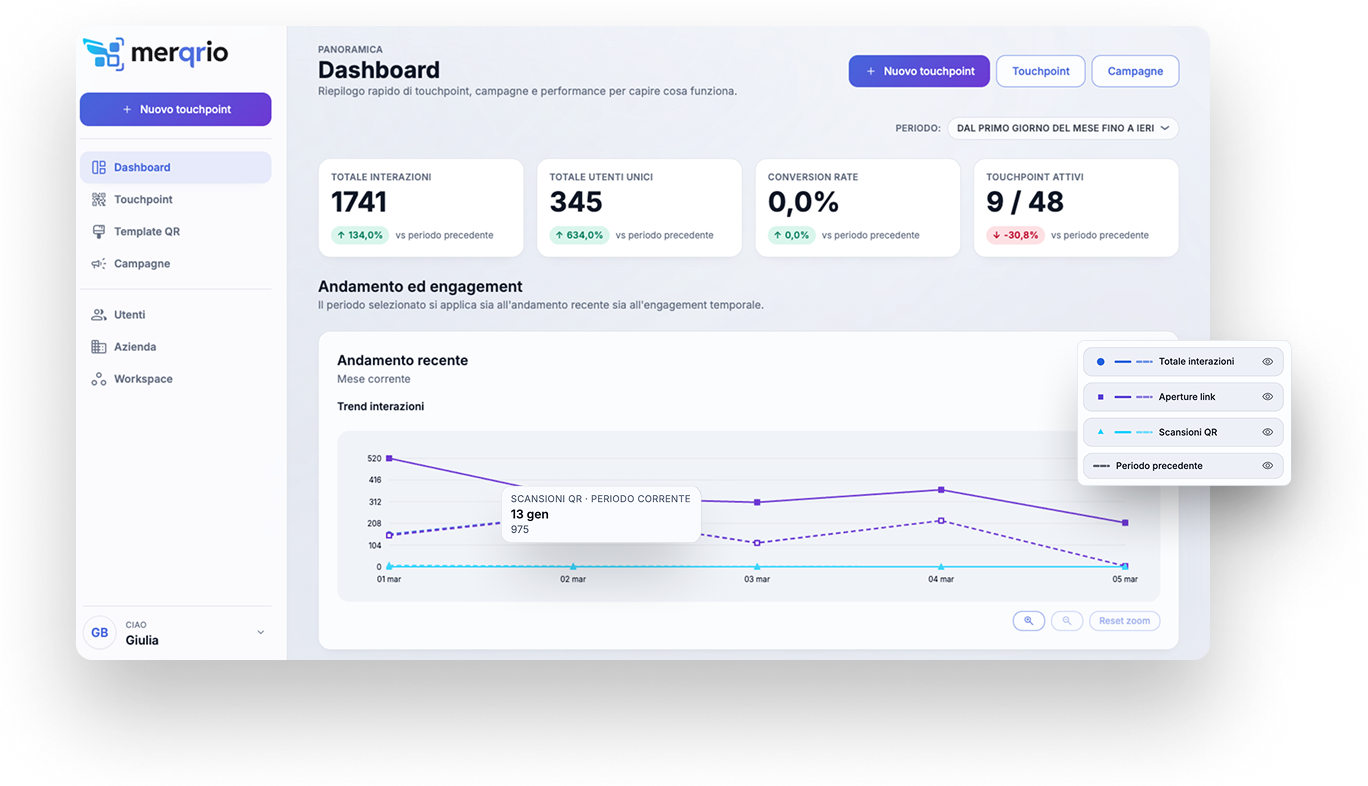 Trasforma QR e touchpoint fisici in dati chiari per capire cosa funziona, dove e quando.