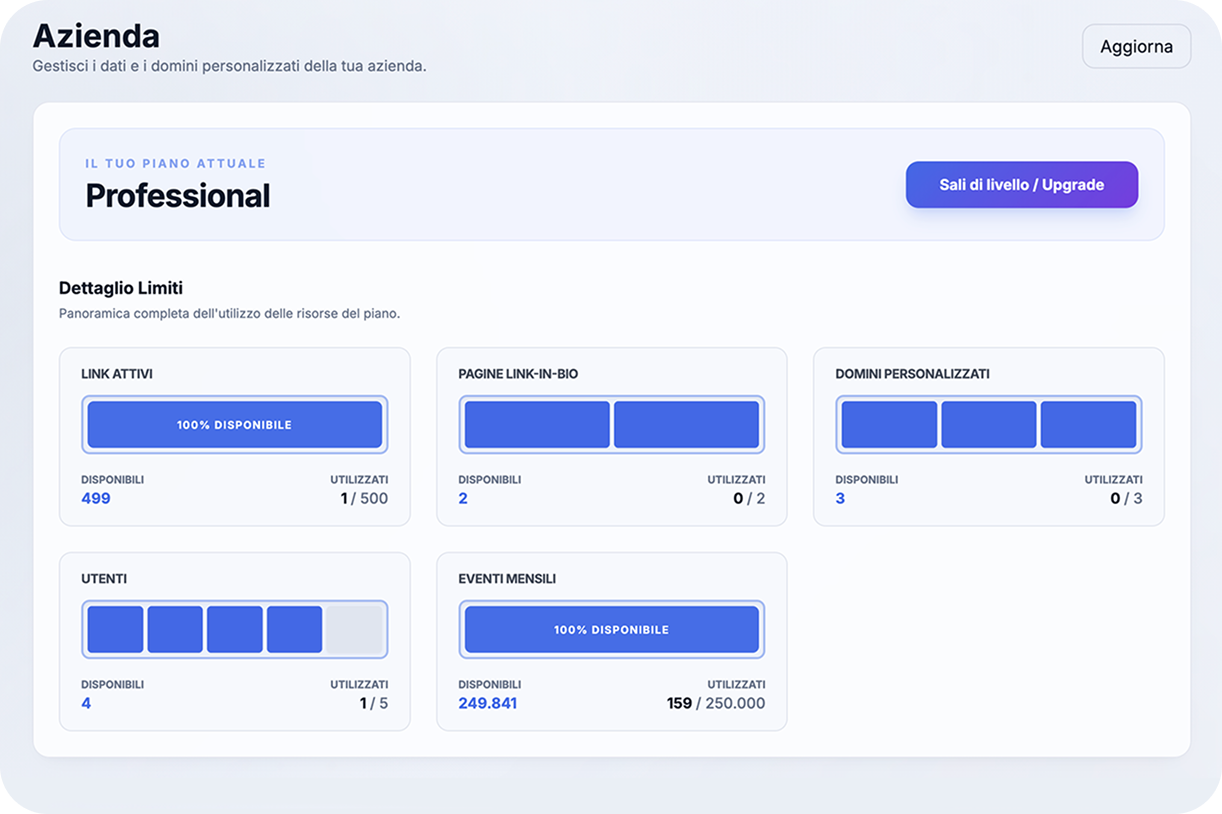 Con link intelligenti e QR dinamici tracci ogni interazione e raccogli dati reali da prodotti, eventi e materiali offline.